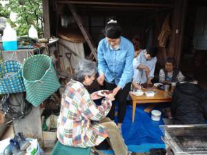 先日の連休にやってきた友人と一緒に行った最上公園。桜がまだ咲いているというウワサを聞いたので。行ってみると桜はほぼ散りきった様子でしたが、広場ではあの有名なかど焼きをやっていました。奥ではブロックにクシを並べて百本ほどのかどが煙を上げて焼かれています。さっそくみんな一本ずつ購入。会場に敷かれたシートの上に4人で車座にすわり、最上の春の味覚を堪能しました。