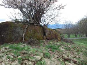 後半ゴールデンウィークの中日に友人が奥さんと一緒に山形にやってきました。日中ご案内したのは西蔵王の大山桜。平地の桜はほぼ葉桜状態でしたがさすがにここはまだ見ごろ。薄緑の山のところどころにピンクの桜の花が咲いていてモネの絵の中にでも入ってきたかのよう。その中で岩の上に咲く桜を発見。岩の裂け目に根を伸ばし存在している。風雪を耐えながらよくぞ倒れずにいるものだと感服。