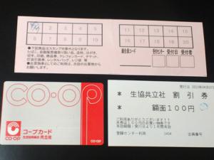 先日、近くのコープで買い物をしたときにレジの女性に会員になることをすすめられました。営業をやっている身として気持ちのいい勧誘を受けると「いいよ」という気持ちになります。本日そのカードを初めて使ってみました。するとスタンプカードに一つマークをつけてもらい100円の割引券などもらったのでした。登録時は1,000円の入会金をお支払したのですが、この分だとメリットも大きいようです。