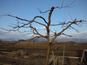 先日の日曜日の午後、実家の柿の木の剪定を。コンセプトは柿の実をもぎ取りやすく。毎年かなり思い切って剪定しているのですが必要以上に実がなります。とくに枝が込んでいるところはもぎ取りが大変。そこで今回は脚立の邪魔になる大枝を切り落とし、高いところの枝を切り落とし、なるべく実が少なくなるようにと工夫。空は穏やかな小春日和。田んぼの向こうには白鳥が羽を休めていました。