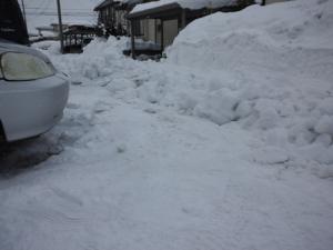 今朝、食事をとり車を暖めようかと外に出ると、除雪車が道路の雪を豪快に削りながら進んできます。いよいよ雪を持っていってもらえるよう。まずは妻の車を温泉の駐車場に運び出しました。戻ってみると私の車の前には硬い雪が積み上げられ脱出不可能に。出勤時間だったのですが雪を運び出してくれるのも有難く、除雪作業を見守りました。おかげで自宅前の道路の雪もかなりスッキリなくなりました。