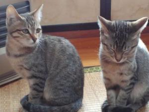 先日お伺いしたお客様では猫を飼っておられます。ファンヒーターの上に乗ってこちらを見ています。そこが暖かいことを知っているのだと。入れ替わりに同じ模様の小さい猫が2匹入ってきました。こちらはファンヒーターの前にきっちりと正座。やがて目を閉じ始め首を下げながらうたた寝を始めたよう。写真を撮るとその音に反応し目を開けるのですが又すぐに目を閉じながら気持ちよさそうにしていました。
