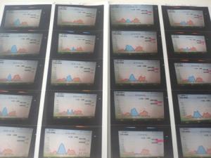 写真は自宅の消費電気量と太陽光パネルにより発電したものを売電した日々のグラフ。赤い部分が消費電気量。真ん中の赤い部分が売電分とのこと。 |