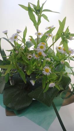 昨日お伺いしたお客様では社長不在で事務員さんがコーヒーを出してくれました。テーブルの上には「職場の倫理」が置いてあります。パラパラとめくると「自分をほめよう」という一文が載っていました。「今日一日で自分をほめることはどんなことがありましたか?」と尋ねると、そーねと言いながら「河原に行って花を摘んできて飾りました」と。テーブルにはどこか懐かしさを感じさせる花が置かれていました。