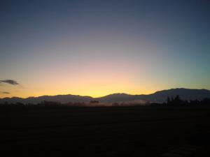 今朝、早朝散歩をすべく外に出ると、竜山の上が赤く色づいていました。散歩日和と思いルートを変更し事務所まで歩くことに。三河橋を渡り山形市に入ったあたりからややお腹の具合があやしい。安全策をと引き返すことに、すると急に危機感が高まってくるのでした。意識を別のものに集中させると危機感はやわらぐのですが、家が近づくと視覚からの意識が高まるのか危機感は頂点に達したのでした。