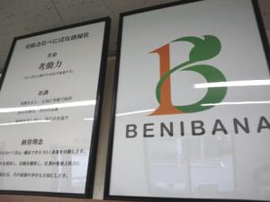 昨日お伺いしたお客様は4月1日より2つあった会社を統合されました。企業としての意識をより高めようとロゴマークを作られました。会社の名前にちなんだべにばなをイメージしたデザイン。専務のアイディア。もう一つの会社の名前の「1」という文字も入れ、文字通り地域一番の企業を目指すと。社是は「自ら考え行動しよう」と『考動力』と。専務の奥様のアイディアとのこと。社訓は専務と奥様の議論の作。
