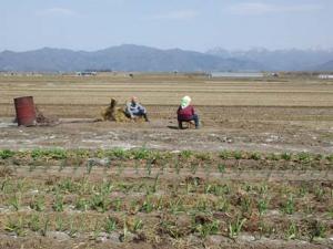 先日の日曜日、小型耕運機で実家の畑の耕しを行いました。天候は快晴で畑仕事日和。東には残雪を少しかぶった蔵王連峰がよく見えていました。畑は一冬の雪で押し固められています。小型の耕運機では一気に深く耕すのは難しく、まずは第一次耕運で表面の土を起こし、第二次耕運でなるべく深く耕すという丁寧な作戦をとりましたが、それでも母親からは「うない方が浅い」とクレームが。