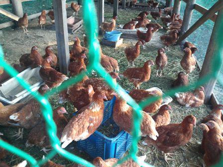 中をのぞいてみると平飼いの小屋の中で鶏一匹一匹が幸せそうに暮らしていました。