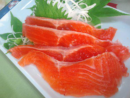 こちらがニジマスの刺身。裏の池で養殖しているらしい。まるでサーモンのような色合いですが味はしっかり淡水魚。他ではなかなか食べられない逸品かもしれません。