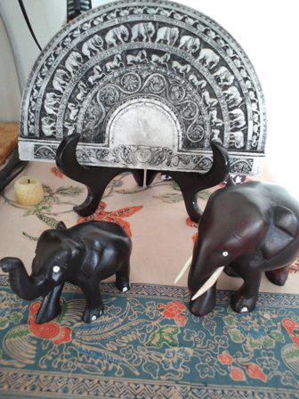 帰り際にスリランカからのおみやげをいただきました。石に細かく細工されたものや像の置物。立派そうなものをもらってしまった。こちらからあげたのはハンカチなど。バランスはかなり悪い。