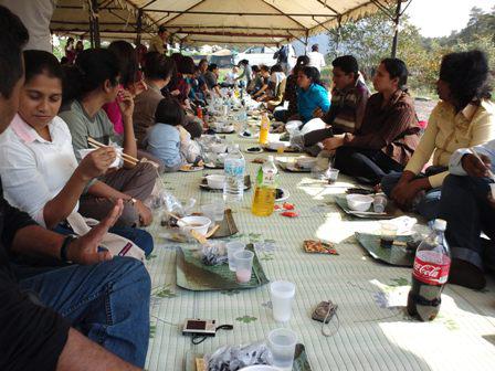 お昼に馬見ケ崎の河原に集合。みんなニコニコしながら戻ってきました。それぞれに得がたい体験をしてきたという表情。ホームステーの〆は全員での芋煮会。牛肉を食べられない人たちも多く鶏肉の芋煮。芋煮のあとはカレーうどんに。もうおなかいっぱいと言っていた人たちがカレー味になったとたんに食欲が戻ってきたよう。やはり日本のしょうゆ味にはあまりなじめなかったようです。