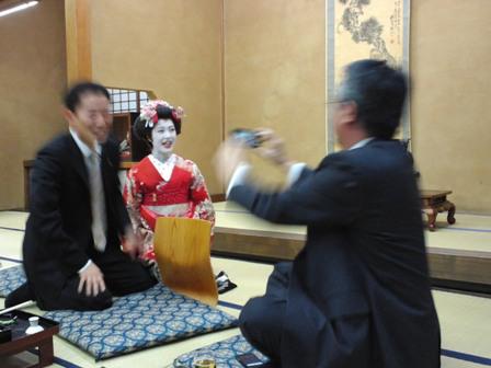 山形を去る社員は思い出にと舞妓さんとの記念撮影。