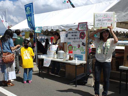 募金場所は馬見ケ崎河川の日本一の芋煮会会場。人出に不足なし。「石巻への〜、梅ジュース100円協力プロジェクトで〜す、梅ジュース一杯つきま〜す!」との呼びかけに反応してくれたのは50%が福島、宮城、岩手から来ている人。実家が石巻で津波で全壊したのという人なども。東京、神奈川、栃木などその他の県からの人が25%。会場では圧倒的な人数がいるであろう山形県の人の協力は全体の25%くらいでした。