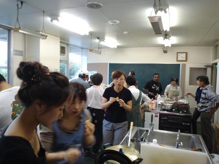 この日は昼から集まりブラジル、ペルー、インドネシア、中国の人たちと料理作り。隣のチームの料理を試食しながら作るというのが妙味。