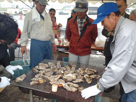 実はこの祭、地元の人たちの屋台がとびきり豪華。焼きかきコーナーでは次々に貝を空けてくれます。アツアツのプリプリのかきを遠慮なく頂きました。