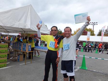 ご近所の方もいました。彼は私より5分早くゴール。なかなかの健脚。近江ランナーズクラブをつくろうか?など、勢いにまかせたアイディアも出てきたところです。