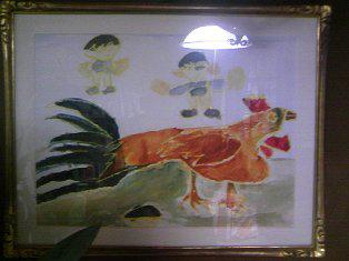 昨日お伺いしたお客様は茶の間に「にわとり」の絵を飾っておられました。息子さんが小学校一年生のときに描いたものらしい。県の展覧会で優秀賞をもらったものとのこと。「この子は才能がある、ピカソのよう!」とも思ったそうです。二年生、三年生のときも賞をもらったそうです。が、それが最後だったよう。その息子さんも今は大学生。沖縄に行ってしまい喪失感に悩まされているそうです。