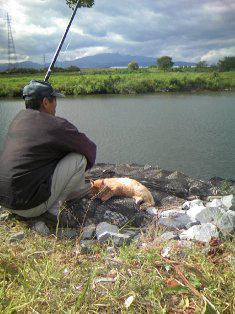 先週の土曜日、最上川の河川敷まで行ってみると川辺で釣りをしているおじさんがいました。その足元に茶色い猫が一匹。かなりなついている様子でおじさんの飼い猫かとおもったのですがそうではないらしい。この辺を住処にしている野良猫とのこと。「シンタロウって言うんだ」とおじさん。釣った魚をシンタロウにやるらしい。シンタロウもおじさんが魚を釣り上げるのをじっと待っていました。