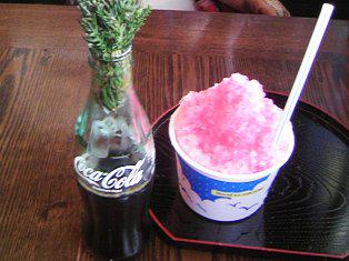 先日の21日、妻と山辺名物「すだまり氷」を食しました。山辺町に住み始めて10数年、名前だけは聞いていたその氷は、駅前通りの吉田カメラ店の一角にこじんまりとした喫茶コーナーが作られていて、土日祝日にそこで食べることができるのです。イチゴシロップがかけられた氷にコカコーラのびんに入った「すだまり」をふりかけて食べるのですが、これが決してミスマッチではないことを実感しました。