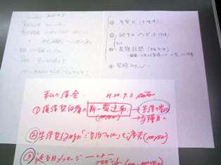 生命保険の世界では契約をいただいているお客様に対して行うサービスを保全といいます。この保全がお客様から信頼いただき営業の広がりを作っていく上で欠かせない活動のようです。そこで昨日はソニー生命トレーナーを中心に我社で行う保全について考えました。3人がそれぞれに「私の保全」を考え、全体で行うことを検討しました。私が行う保全は下記の内容です。