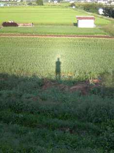 本日は朝の土曜ウォーキングに出かけました。稲穂やそばの花が咲いている田んぼ道をとおり、土手に登って山辺町の風景を眺めながら歩きます。土手を歩いているとニラ畑の脇をとおります。朝日がニラ畑を照らし自分の影が写っています。よく見ると影の周りが他より明るくなっています。まるで後光が差しているかのように。どういう自然現象かはわかりませんが何か太陽の力をもらっている感じがします。