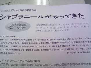12月1日(月)シャプラニールの活動報告会が行われます。シャプラニールは30年前からバングラデシュにおいてNGO活動をしているNGOの老舗中の老舗。最近はバングラデシュも経済の発展にともない核家族化が進み、取り残される高齢者の問題が出てきているとのこと。今回は現地スタッフより来日してもらい活動現場からの生の声をお届けいたします。どなたでも参加OKですよ。