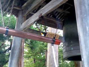 昨日お伺いしたお客様はお寺のご住職をしておられます。境内に入るとゴーンという鐘の音が聞こえてきました。鐘突き堂を見ましたが誰もいません。しばらくしてまたしてもゴーンと鐘がなります。近づいてみると鐘突き棒の上にくの字になったものが見えます。カチカチと音がしたかと思うとその棒が勢いよく飛んでいき鐘をならしていました。鳴らし手は朝7時と夕方6時にセットされた自動鐘突き機でした。