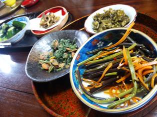 昨日お伺いしたお客様は自家製野菜でいろいろな料理を作られます。玄関に入ると「漬物でお茶でも飲んでいって!」と。出てきたのはワラビのラー油漬、ニンジンのおろぬきのゴマとクルミとミソの和え物、キュウリのお酢煮などなど。「きのう来ればタイのアラ煮もあったのに!」と、何か定食屋さんにでも来たかのよう。保険のご案内もさせていただいたのですが、そちらの成果はありませんでした。