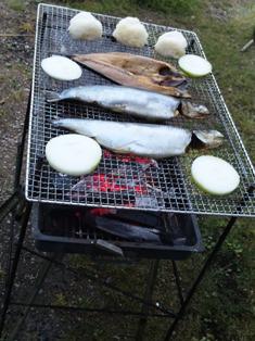 先日の日曜日、妻不在につき一人で夕食を食べることに。さっそく炭をおこしホッケとカドを焼きました。炭から25cmの高さが遠赤外線効果で魚が大変おいしく焼けます。隣のオヤジさんも合流、炭焼きのカドをつまんでいると子供たちも合流。焼きオニギリが大変好評。ニンニクもアルミに包んで丸焼きにしました。おかげで昨日は一日中ニンニクの臭いが消えず営業では大苦戦しました。