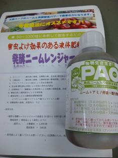 昨日、頼んでいたニームレンジャーが届きました。インターネットで注文したためどこの業者かは確認しなかったのですが広島からでした。ニームの木はバングラデシュなどに生育している木でその木から取れる液体は植物の虫よけとして昔から使われていたもの。今、無農薬野菜の栽培をする人たちに注目されだしています。我が家にある2本のナスもこれで虫から守られ立派な実をつけることでしよう。
