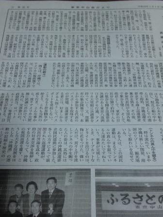 昨日知人より便りが届きました。「東京中山会だより」に寄稿した内容を送ってくれました。中山町出身の東京在住の人たちが作っている機関紙のよう。中山町青年団で沖縄青年団を招いて交流をしたこと。沖縄返還要求国民運動連絡協議会の事務局長としてアメリカ大使館に度々抗議に行ったこと。担当一等書記官のロバートルーニッツと親交が始まりアメリカへの招待を受けたことが書かれていました。