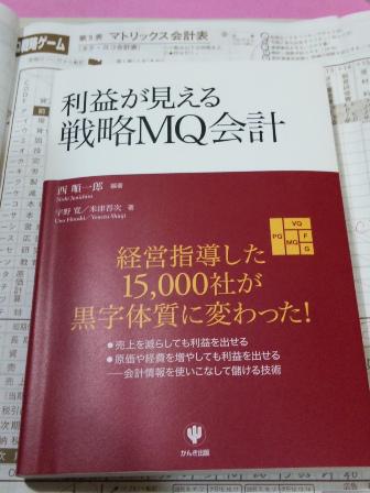 先週の金土曜日の二日間、山形市内でMG(マネージメンドゲーム)が開催されました。5〜6人で卓を囲み売り買いの商売をしそれらをマトリックス会計表にまとめていくというゲーム。儲かるビジネスの考え方を学ぶもの。今回はMQ会計普及に命をかけているという宇野寛さんも参加。自ら出版した『利益が見える戦略MQ会計』が販売されました。何でも東京マルゼンでは売り上げ上位ランクらしい。