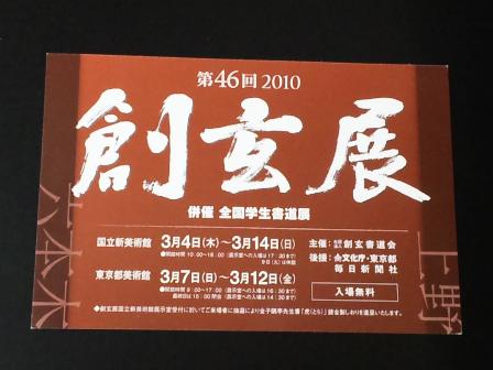 先日お伺いしたお客様は定年退職後に書道を始められました。3年ほどで随分と上達されたよう。勧められて「創玄展」に出品したそうです。すると入選のお知らせがきたそうです。展覧会は3/4から国立新美術館で行われるとのこと。是非見に行かねばと、お知らせを最後まで読んでみると入選はしたものの展示はないとあったそうです。どうも初めての出品者はみんな入選するというウワサがあるらしい。