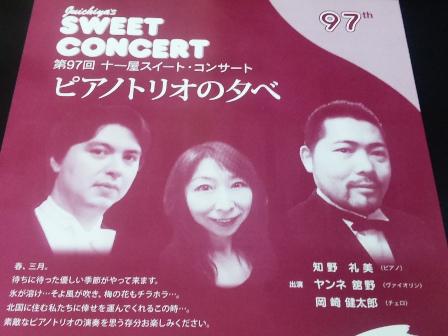 昨日、山形市七日町のお菓子屋さん十一屋の2Fでコンサートが行われました。このコンサートはそうとう以前から行われているよう。ピアニストの舘野いずみさんも3回出演したとのこと。その3回目のコンサートで「息子を紹介したい」と当時20才だったヤンネさんと共演したそうです。今ヤンネさんは山響の第2ヴァイオリン主席奏者。甘いマスクで女性ファンが多そう。昨日も演奏後ファンに囲まれていました。