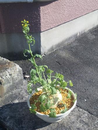 写真は外に出したところ強風で中心の茎が折れてしまった『大福かぶ』