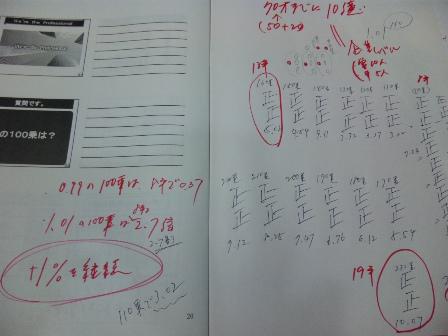 先日のセミナーで1.01の100乗は2.73になることを聞きました。だとしたら5倍になるにはどれくらいなのかと1.01をかけ続けていくと160回かけたところで5.02となりました。1年1乗とすると13年かかります。となると知りたくなるのは10倍になるにはどれくらいかかるのか。230乗で10.07となりました。19年かかります。19年後にはきっちりと企業レベルにまでもっていきたいと思います。
