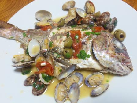 昨日自宅に戻ると「今日はちょっと豪華よ」と妻。仕事が休みだったので遠くに買物に行ったらタイが安かったらしい。「有元葉子のオリーヴオイルレシピ」に載っていたアクアパッツァを作ってみたいと思っていたのだと。確かその料理本は妻が図書館から借りてきたものを私が汚してしまい新品で弁償したというあの本。それはともかく、お味はなかなか私好み。これにコリアンダーの葉っぱが入れば完璧だ。
