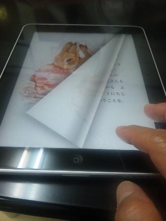 昨日ご来店いただいたお客様は小脇に黒いケースを抱えておられました。おもむろにそこから取り出されたのは今旬のiPad。先週金曜日に購入したものらしい。先々でみなさん結構な関心を示してくれるのだと。さっそく評判の書籍コーナーを開いてもらい、絵本のページを一枚一枚めくってみました。パラリパラリとページがめくられる感じはなるほどウワサに違わぬリアリティーがありました。