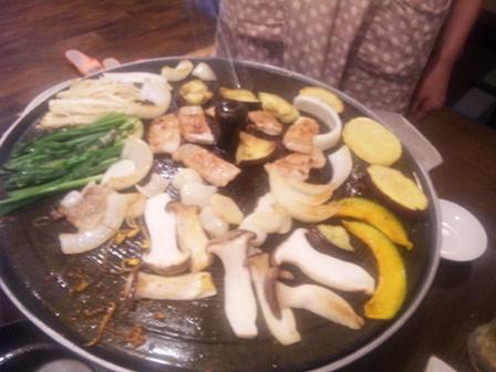 昨日は会社のミーティングで近くの韓国焼肉店に行きました。(単なる飲み会)。 店の名前は幸恩(コウウン)。女の人が二人でやっていました。サンギョプサルを頼むと山辺町産の舞米豚(マイマイトン)のバラ肉が出てきました。それらを韓国の焼肉鍋の上に並べて焼いてくれます。ニラやニンニクもたっぷり。それらをサンチェに包みながら堪能。本日の当社事務所はニンニクの臭いがいっぱいです。