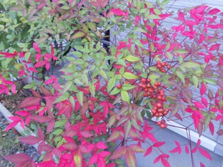 写真は我が家の玄関前のナンテン。秋が深まってきています。