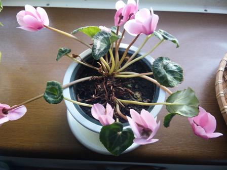写真はますます元気がなくなってきた我が家のシクラメン。