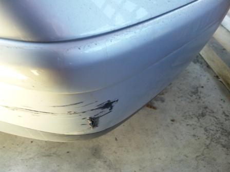 昨日お伺いしたお客様は狭い道を車で通っていると対向車が来たそうです。見ると相手は和尚さん。コレハコレハ道をゆずらねばと思い、よそのお宅の敷地にバックして入ったそうです。何かガツッと音がしたような気がしたと。その時は暗く良く見えなかったのですが、翌日見るとリアバンパーにキズが、深いところでは貫通して穴まで開いていたとのこと。和尚さんに道をゆずってもぶつかるんだと知ったと。