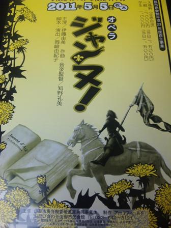 昨日お伺いしたお客様は5月5日に開催されるオペラのチケットを販売しておられました。音楽作曲とピアノ演奏、舞台の監修を担当するのは知野礼美さん。オペラ『ジャンヌ』は3年前にできた作品。山形の人たちで作り上げた100%山形産のオペラ。今回はキャストも増え、ストーリーも音楽編成も新しくなるとのこと。客席の前の部分を取り除きオーケストラピットを作り本格的なオペラを味わえるよう。