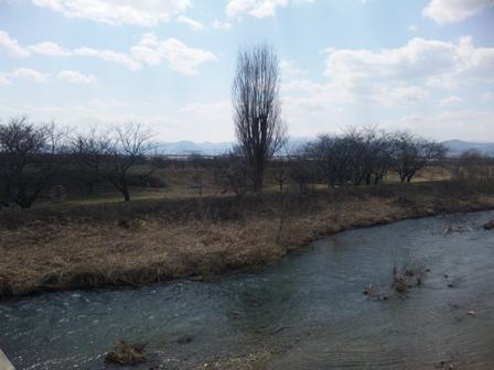 先日、お客様からの帰り道に川の近くに行ってみました。そこに架けられている橋には震災のため当分の間通行できないと張紙がありました。その橋のふもとに一本のポプラの木があります。かつて子供の頃、2kmほど下流が遊び場になっていて、いつも遠くから眺めていたポプラの木です。友達と魚をつかまえて炙って食べたりしたことも。確か以前はもう一本ポプラの木があったと思うのですが。