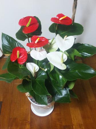 昨日帰宅した妻が「たいへんな物をもらってしまった」と言って、高さ1mほどのダンボールを部屋の中に運んできました。新しい職に就いたことへのお祝いとして「恩師」が贈ってくれたのだと。開けてみると赤と白の花がパッカリと開いていました。アンスリウムという植物らしい。熱帯アメリカ産でサトイモ科の観葉植物のよう。その花の表面は人口的な光沢があり、思わずプラスチック製?かと。
