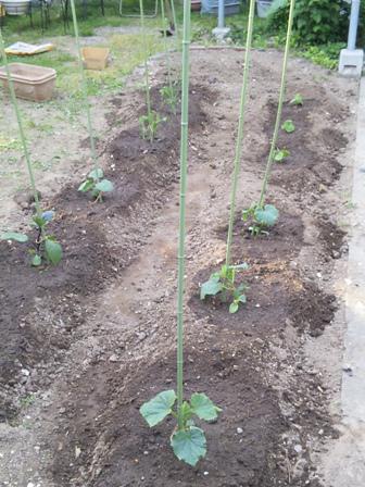 昨日の日曜日、近くの苗屋さんに行って野菜の苗を購入。畳4枚ほどの自宅の畑に植え付けをしました。ゴーヤとキュウリ、ナス、トウガラシといつものパターン。今年はミニトマトと食用ホオズキをプランターに植えてみました。例年より一週間ほど遅い植え付けですが、畑に野菜が入ると「またこの季節がやってきたか」という気になります。今朝外に出て苗の様子など確認。ついつい時間がたってしまいます。