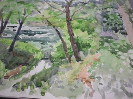 昨日お伺いしたお客様は水彩画に取り組んでおられます。中学時代は風景を画くことが好きだったそうです。美術の成績は「5」だったと。就職してからは機会がなかったようですが、退職を機に「好きなことを」とはじめられたもの。透明水彩という画法らしい。先日、仲間の人たちと県民の森に出かけ画いてきたそうです。初めて10号の画用紙を使ったと。雨のため完成まで至らず7合目あたりだそうです。