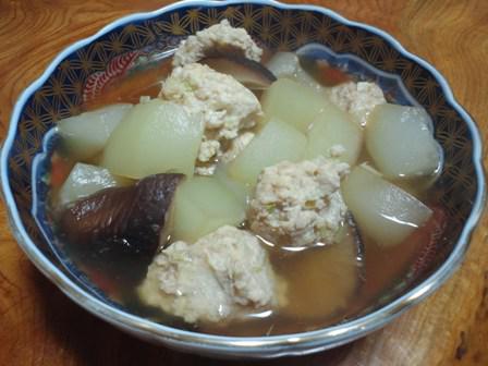 先日いただいたゆうがおを料理しました。真ん中からブツリと切ろうとしたのですが包丁が進まず。なかなか硬い。それらを立てて皮を切り落とす時は意外とスムーズ。適当な大きなに切りシイタケ、肉団子と一緒に煮て出来上がり。鍋一杯のゆうがおの煮物が。食感はなめらかでツルツルとのど元を過ぎていきます。皮を薄くむいたところが時々ゴソゴソと引っかかります。皮は厚めにむくのがコツのよう。