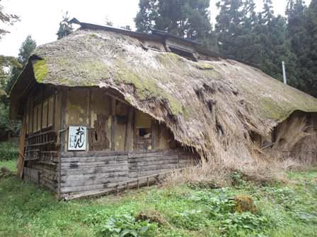 今週末スリランカからのお客さんがやってきます。「おしん」はスリランカでも人気の番組。山辺町と中山町の間に「おしんの生家」の看板があるのを思い出し事前調査に。ややしばらく山道を走るとありました。あの「おしん」の撮影現場です。しかし、その姿はかなり無残。かやぶき屋根は崩れ落ちています。ブームが過ぎ訪れる人もなくなったため修繕の予算をつけることができないのでしょう。残念。