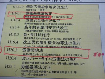 昨日は就業規則についてのセミナーを受けました。平成20年3月に労働契約法ができ労働契約のルールを明文化するよう義務付けられたとのこと。服務規程についてはできるだけ具体的に厳しい設定にしておき、運用をやさしくするというのがポイントのよう。知らなかったというのは経営者の悪質な行為となるそうなのです。将来的に労務紛争でもめないためにも初期設定は大事なことのようです。